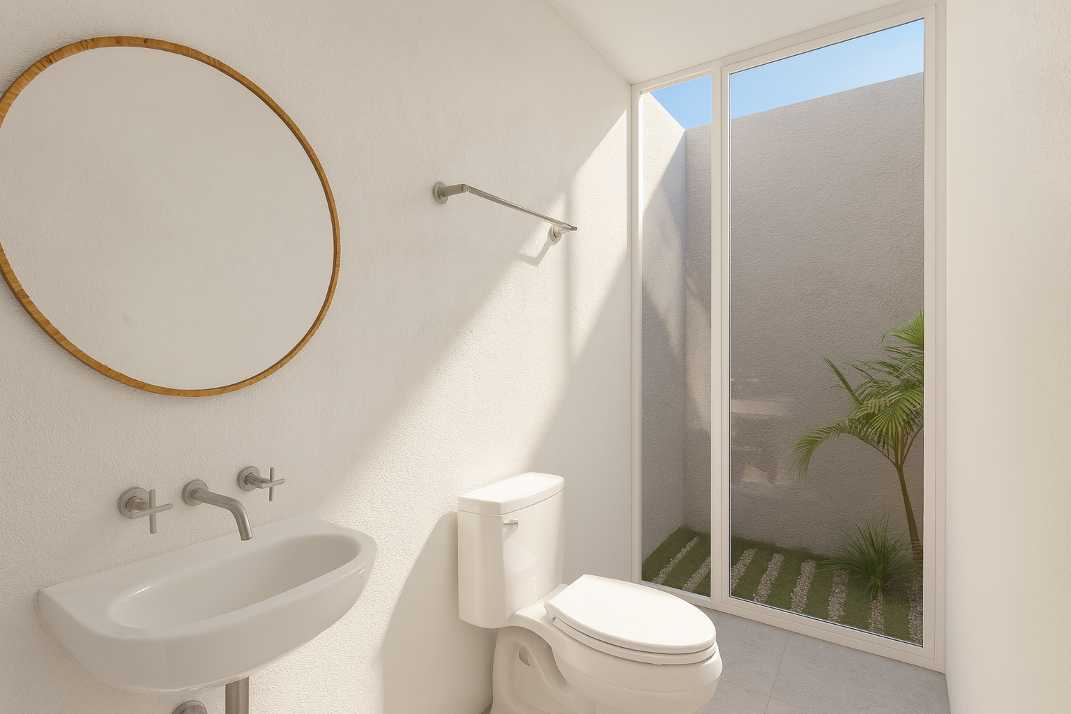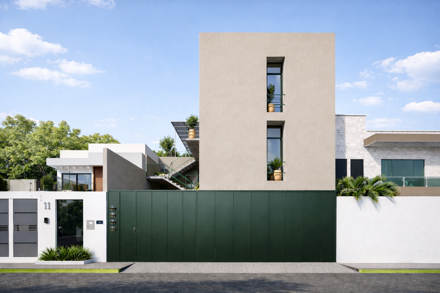 Departamentos Av. Juchitán se distingue por su materialidad honesta y sin artificios: ladrillo, concreto expuesto y herrería se utilizan de forma directa, permitiendo que su textura, color y envejecimiento dialoguen con la arquitectura vernácula de la zona.